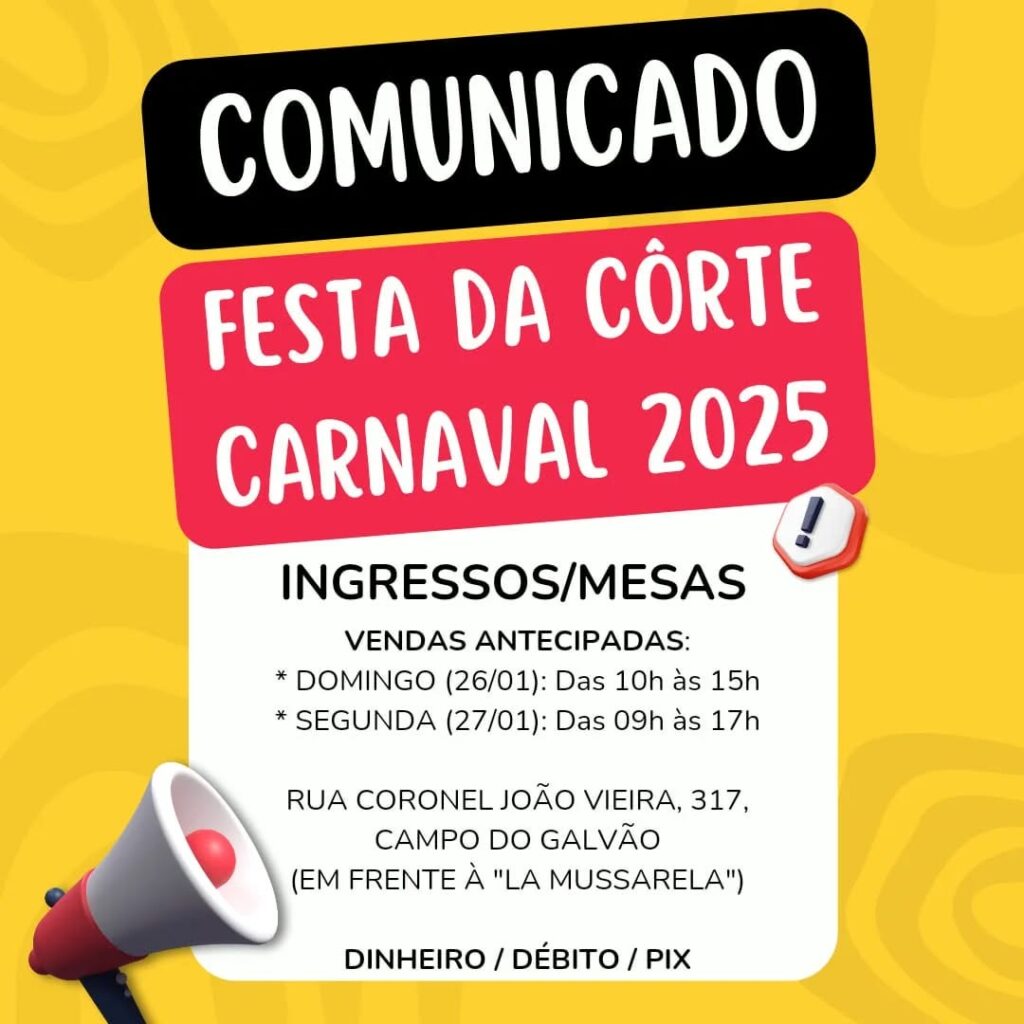 Chegou a hora de Guaratinguetá escolher sua Côrte Momesca para o Carnaval 2025! É com grande expectativa que foi anunciado dois grandes eventos que abrilhantarão a maior manifestação cultural da cidade … apresentamos as tão aguardadas FESTAS DA RAINHA E MINI RAINHA – EDIÇÃO 2025. Já anotem na agenda! Mesas e ingressos Individuais limitados (divulgaremos a abertura das vendas em breve). Fiquem atentos nas mídias sociais da OESG e garantam já os seus!